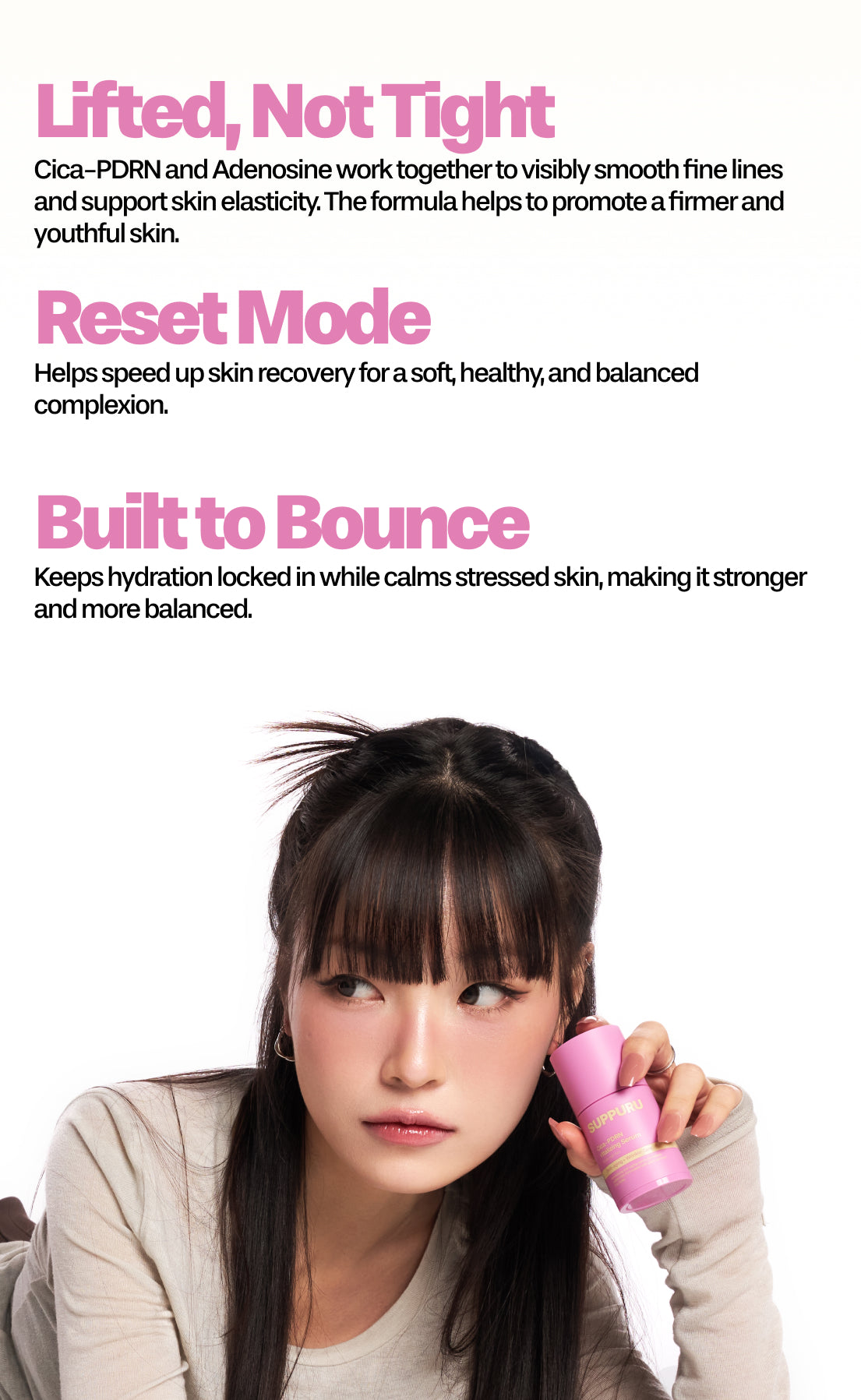 Use the SUPPURU Balancing Toner to balance the pH of your skin, then follow with the Cica-PDRN Vitalizing Serum to seal in hydration and enhance the skin barrier.